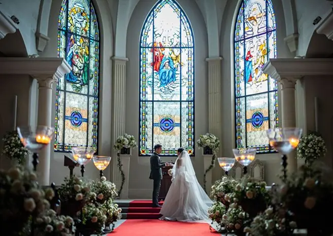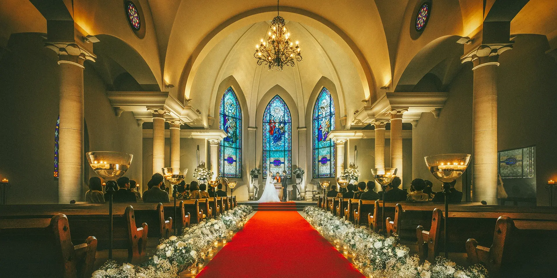 ここで行う挙式は正統派のキリスト教式。牧師とふたりが事前に会話し、結婚について、キリスト教の教えについて理解を深めるとともに、ふたりの深いところに寄り添った挙式となるようメッセージを贈ります。