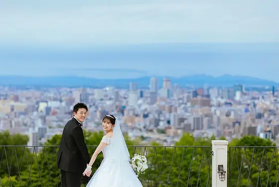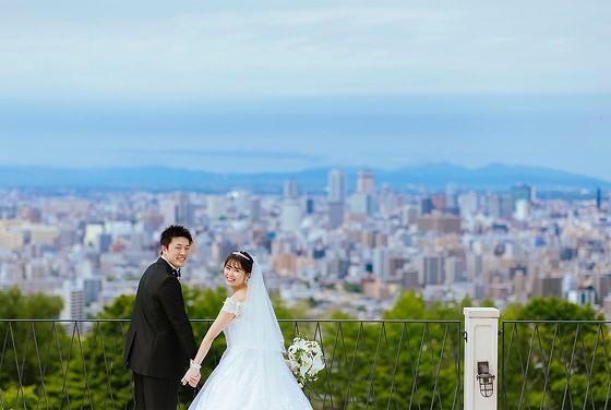 伏見の丘に佇む教会からは札幌の街を見渡し、その向こうには石狩の海のきらめきまでも視界に広がります。抜けるような青空の下でこの日見た景色は、ふたりと訪れた人々の心に深く刻まれます。