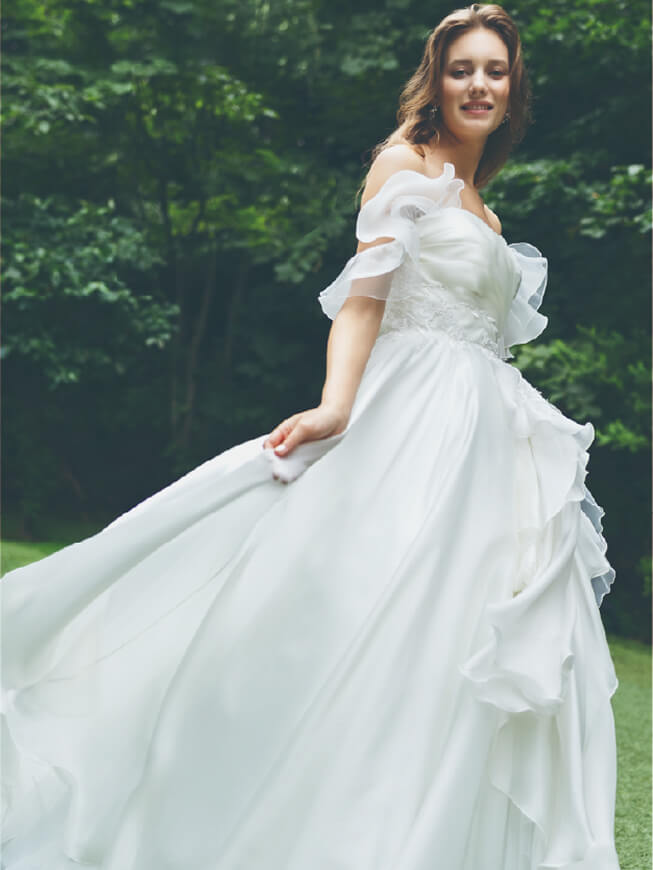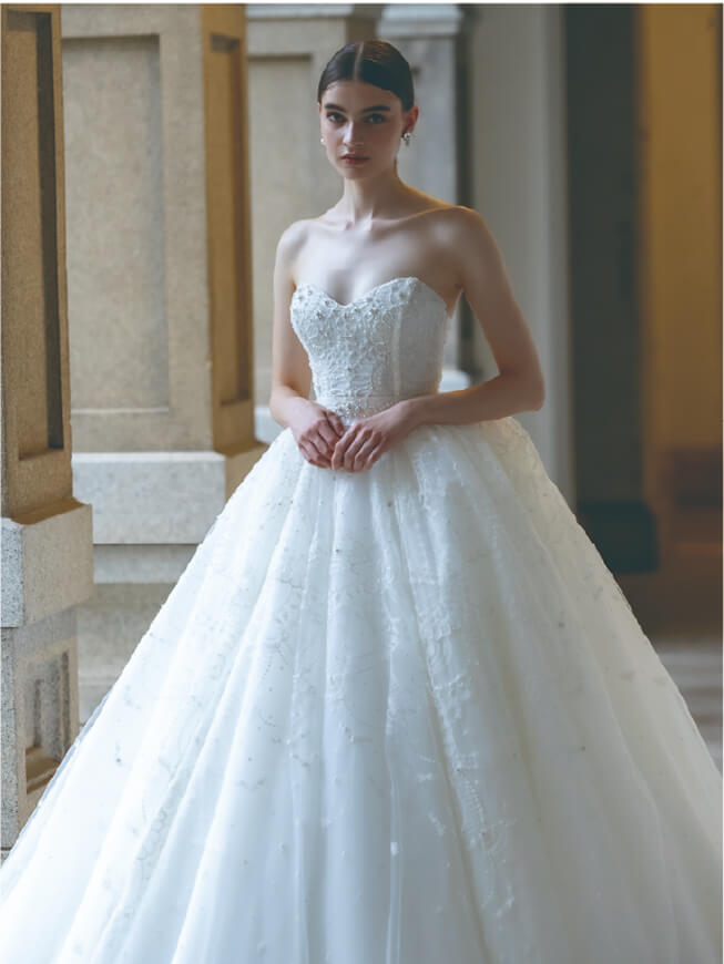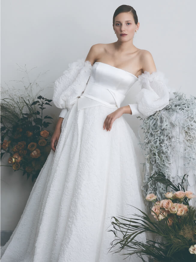 海外のオートクチュールデザイナーによる、ハンドメイドドレスの数々。日本の女性が身に着けた姿を想像しながら創作したドレスは、花嫁自身の魅力を引き出し、美しく見せます。