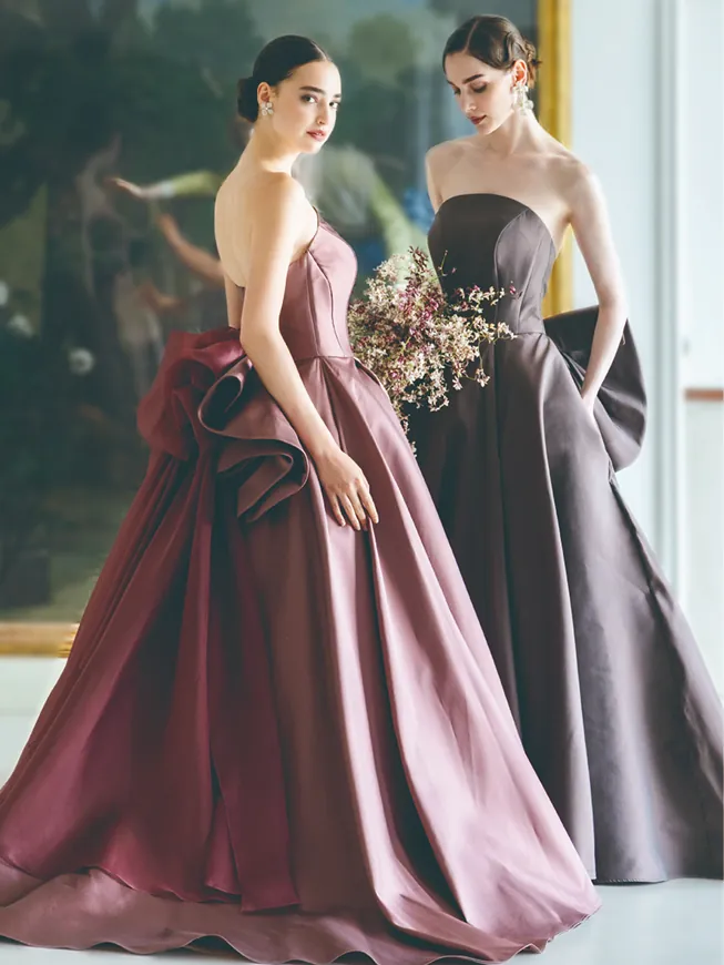 世界で活躍中のオートクチュールデザイナーによる一点もののドレスをはじめ旬のトレンドをおさえた幅広いラインナップから、あなただけの一着を。花嫁の数だけある個性それぞれを表現できるカラードレス。