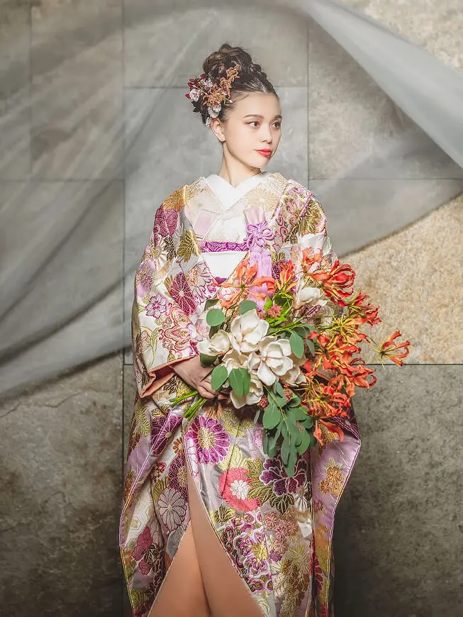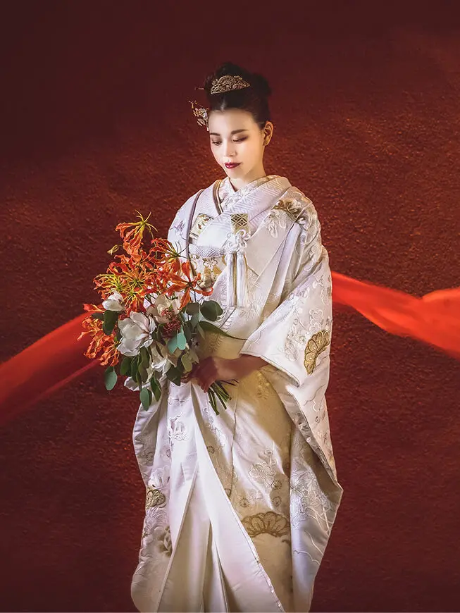 世界に誇る日本の伝統、着物。美しい織に華やかな染めや手刺繍が咲き誇るよう。ヘアアレンジやブーケはもちろん、半襟や筥迫など和装ならではの色あわせや小物あわせで、着こなすことを楽しんで。