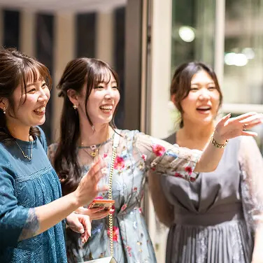 贈答品を会場へご持参の場合は、パーティ中のご歓談時間などの中でぜひご新郎ご新婦へ直接お渡しください。(場合によっては受付でのお預かりも承っております。)